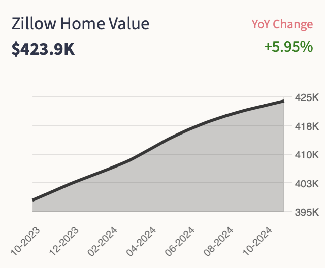 As of January of 2025, Homes in Las Vegas have depreciated by 5.95%. The median home value in Las Vegas is $423,900 as reported by Zillow. This figure highlights the city’s robust real estate market and the potential for long-term property appreciation.