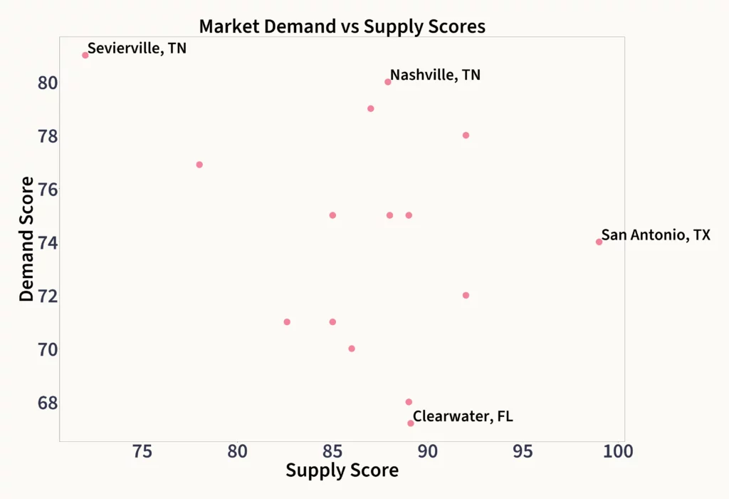 🏠 Some high-performing markets have declining STR supply, giving investors pricing power.