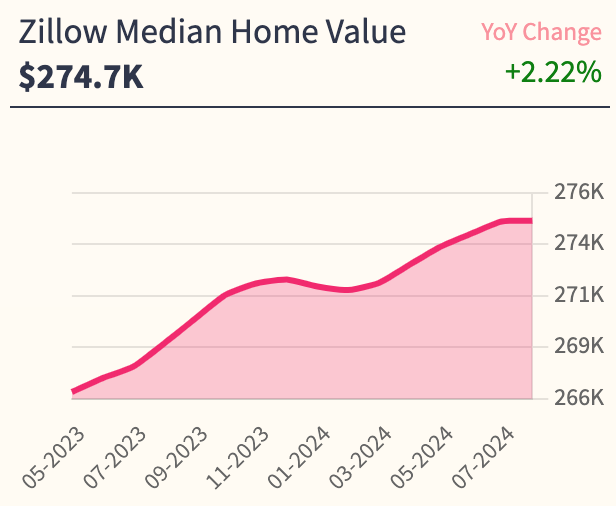 - Zillow Home Value: $274.7K