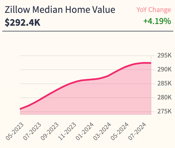 - Zillow Home Value: $292.1K