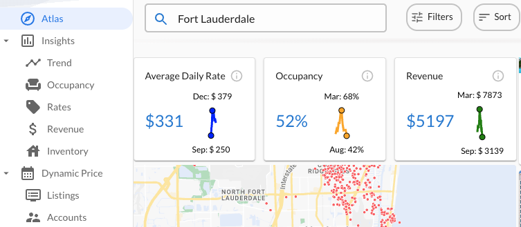 We gathered each platform’s key metrics for Fort Lauderdale (for example: average annual rental income, occupancy rate) and noted any variations. We focus on notable features of each website and general user experience.