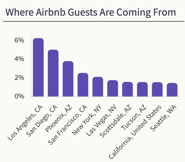 The majority of the guests in Encinitas come from California and are within driving distance. 6.27% of all guests are from Los Angeles followed by San Diego with 5.03%.