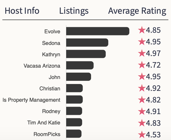 The market is dominated by property management firms. The largest host is Evolve with 4.85% of the total inventory and an average review of 4.88 ⭐️s .
