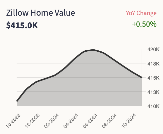As of January of 2025, Homes in Phoenix have appreciated by 0.50%. The median home value in Phoenix is $414,800 as reported by Zillow. This figure highlights the city’s robust real estate market and the potential for long-term property appreciation.